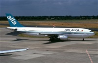 Un Airbus A300 en Alvedro,quien lo iba a decir.Desde mi casa y el pueblo de Vilaboa aviste su enorme y poco habitual cola,dije,eso es algo grande.Fui a verlo unas horas después y allí estaba.Un Airbus A300 de Air Alfa que vino a La Coruña con motivo de la Recopa de Europa.Trajo a jugar al Trabzosport turco contra el Deportivo de La Coruña.