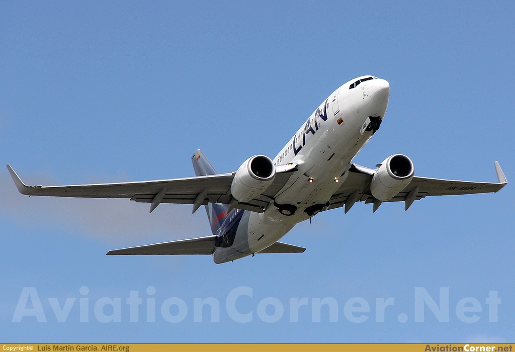 Despegue del B-737 de LAN Colombia (ex Aires) por pista 13L con destino Santa Marta.