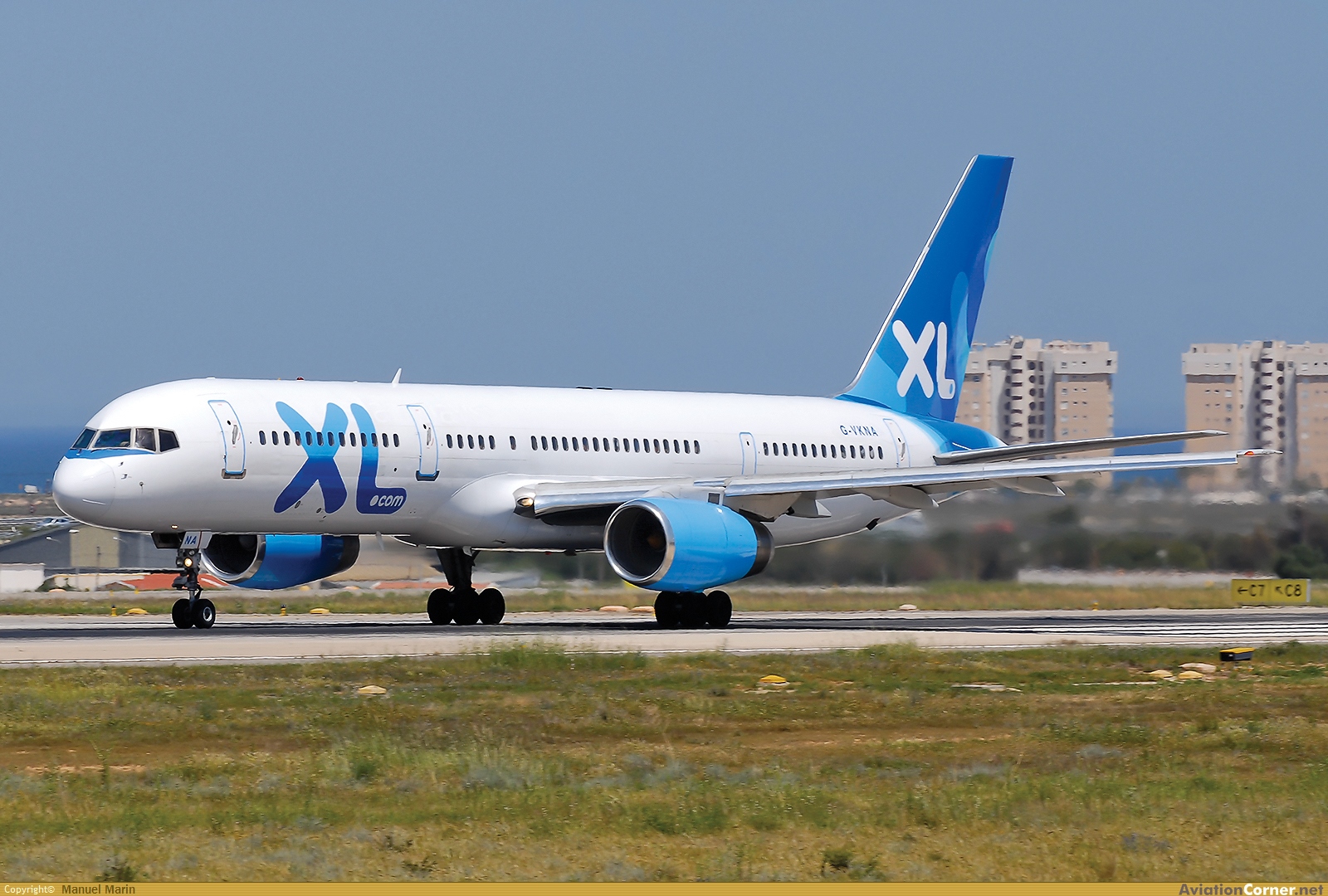 En carrera de despegue por la pista 28 destino Glasgow muy bonito pintado totalmente con los colores de la XL Airways!!!