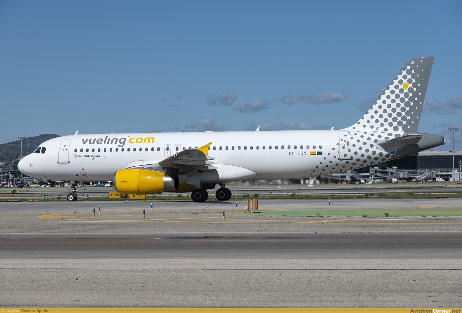 Rodando hacia la terminal después de aterrizar por la pista 24R de Barcelona (BCN) en vuelo VY1869 procedente de Stuttgart (STR) MSN: 5479