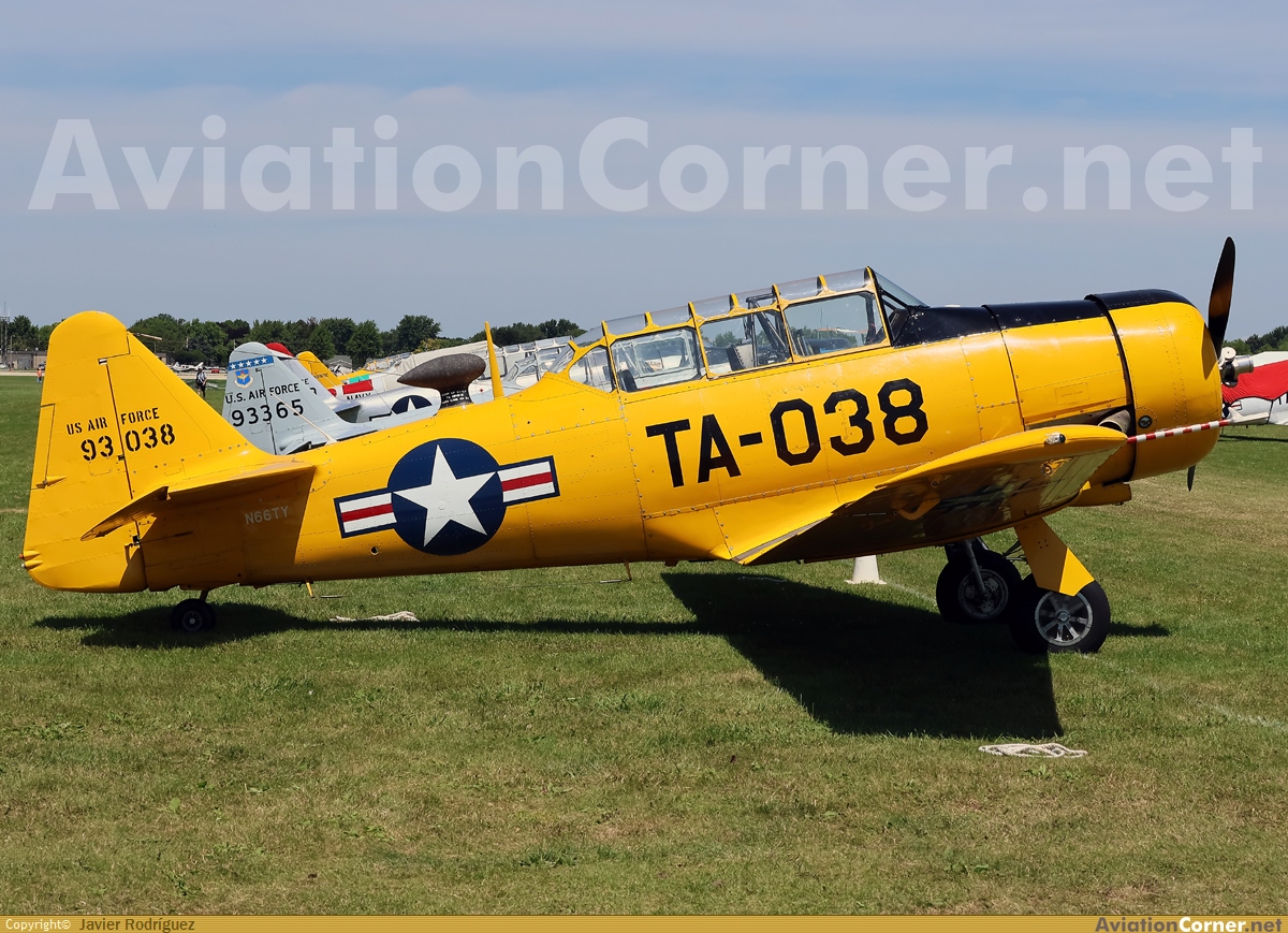 Originalmente 49-3038 este Texan fue transferido a la Fuerza Aérea española como E.16-63. Con otros Texan fue transportado en el CVE-84 Tripoli desde EEUU a Santander el 27/11/1957. Dado de baja hacia 1983 y vendido a un comprador extranjero. En recuerdo a su paso por España lleva el nombre "Spanish Lady" (solo en babor)