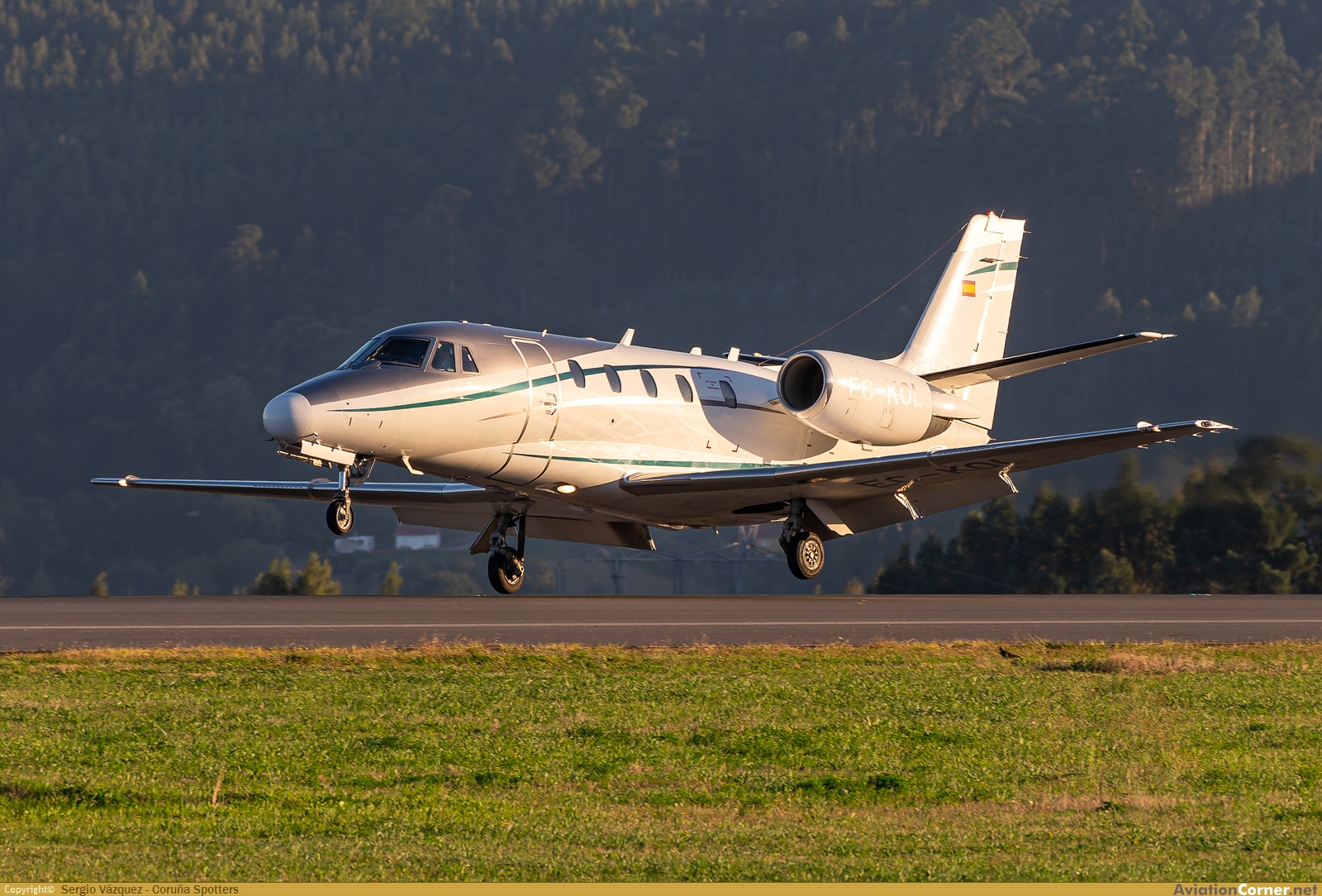 Un Cessna 680A Citation Excel de Gestair, procedente del aeródromo de Cuatro Vientos tomaba tierra por la pista 03 del aeropuerto de A Coruña durante la última luz de la tarde.