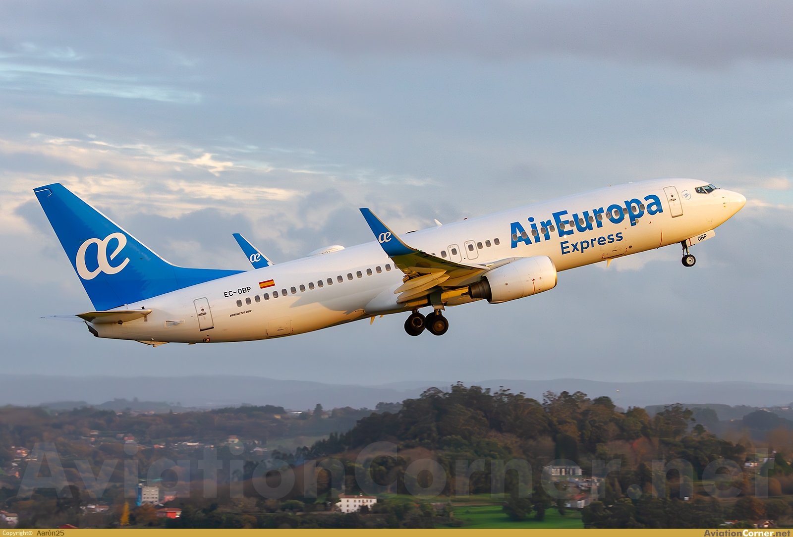 En ascenso inicial tras una potente rotación a su salida desde la 21 con destino Madrid a la luz de los últimos rayos de sol del día.