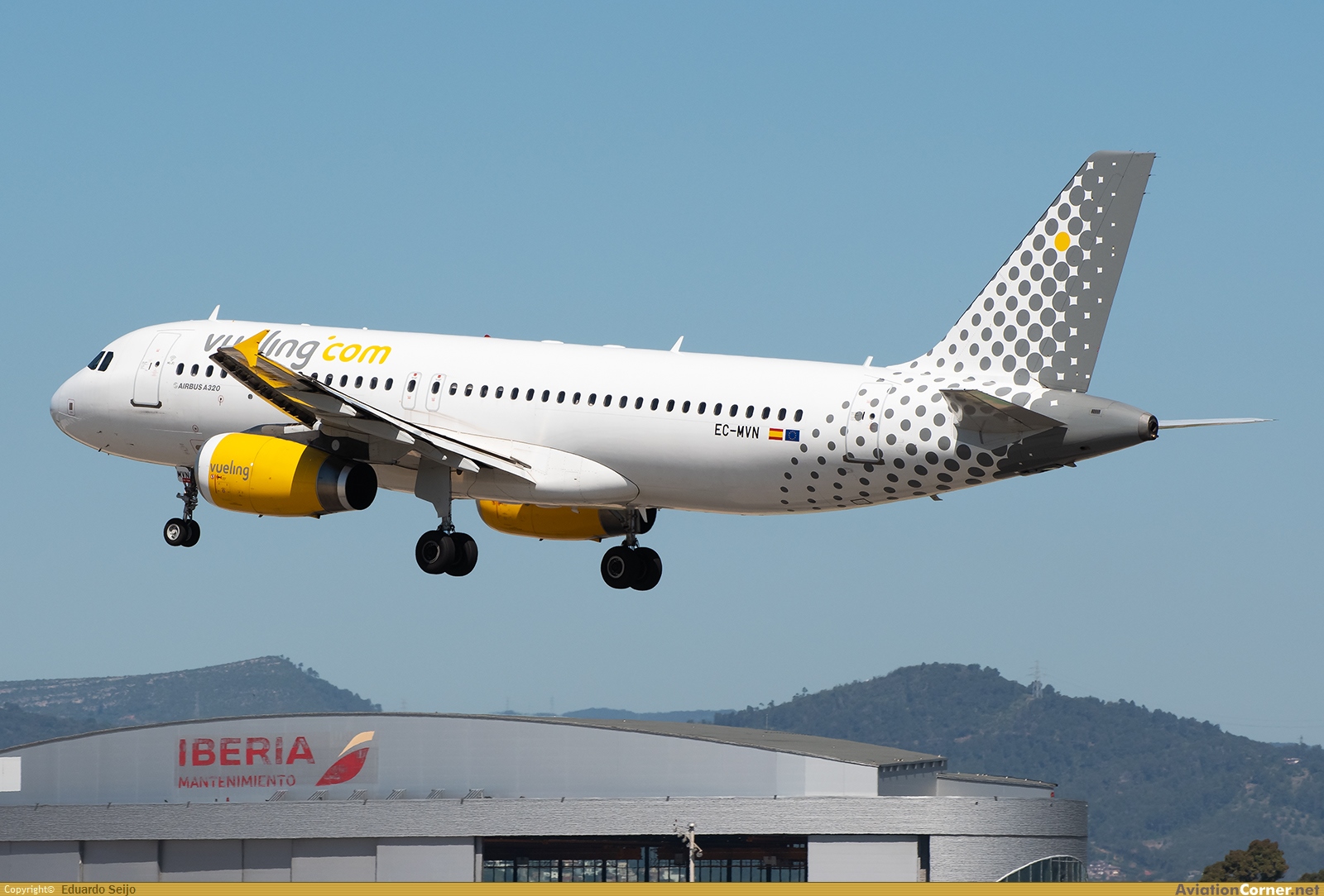 Realizando uno de los últimos servicios comerciales para la compañía, Vueling 77TL (VY1221) procedente de Lyon, en corta final de la pista 24R. MSN 2753, construido para Air Deccan en abril de 2006 (más tarde Simplify Deccan, que a su vez acabaría siendo parte del grupo Kingfisher) como VT-DKT. También voló en el grupo turco Atlas como TC-ATM hasta pasar a Vueling en marzo de 2018. Tras un año parado en Ciudad Real debido a la crisis del Coronavirus, volvió al servicio activo hasta octubre de 2025, mes en el que fue retirado de servicio y almacenado, primero en Castellón y más tarde en Toulouse Francazal.