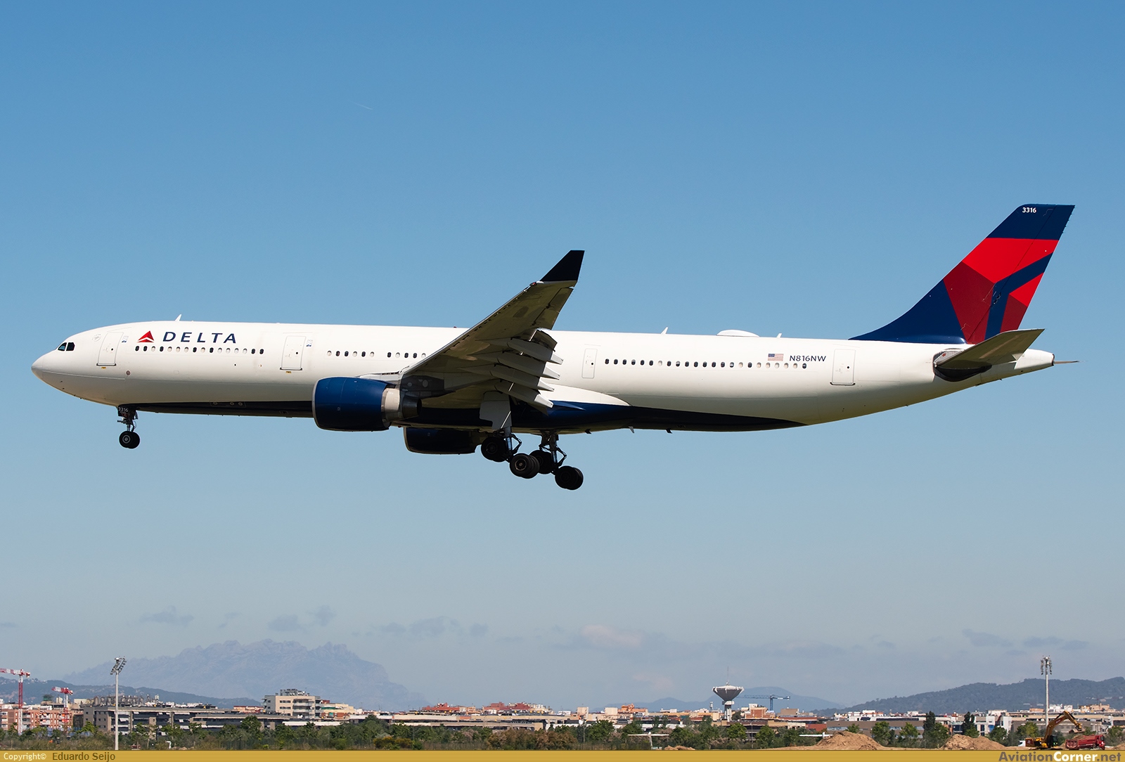 Delta 168 procedente de Nueva York JFK, en corta final de la pista 24R. MSN 827, como todos los A330 de DAL con motores PW se trata de un ex Northwest, a quien fue entregado en abril de 2007.