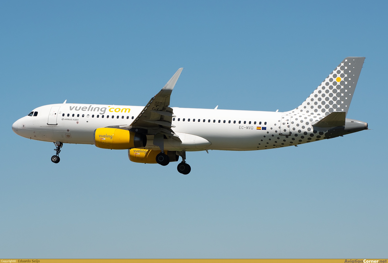Vueling 18SH (VY1312) procedente de Alicante, en corta final de la pista 24R. MSN 8111, entregado nuevo en febrero de 2018.