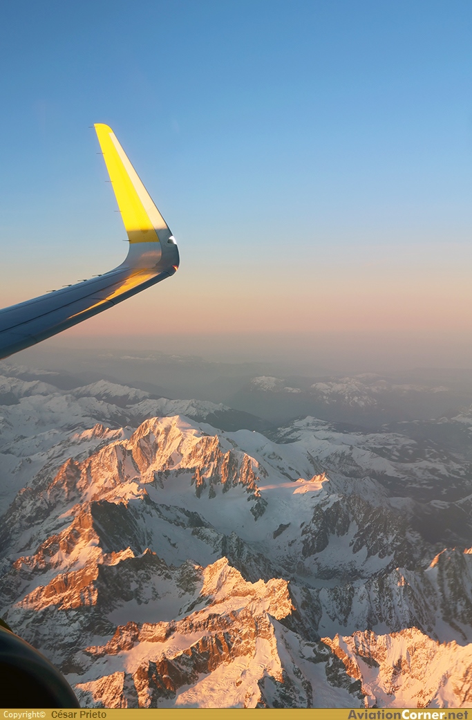 VY6246 Barcelona-Zurich el primer día del año pasando por el majestuoso Mont Blanc. Vuelo de una duración de 1:27 horas.