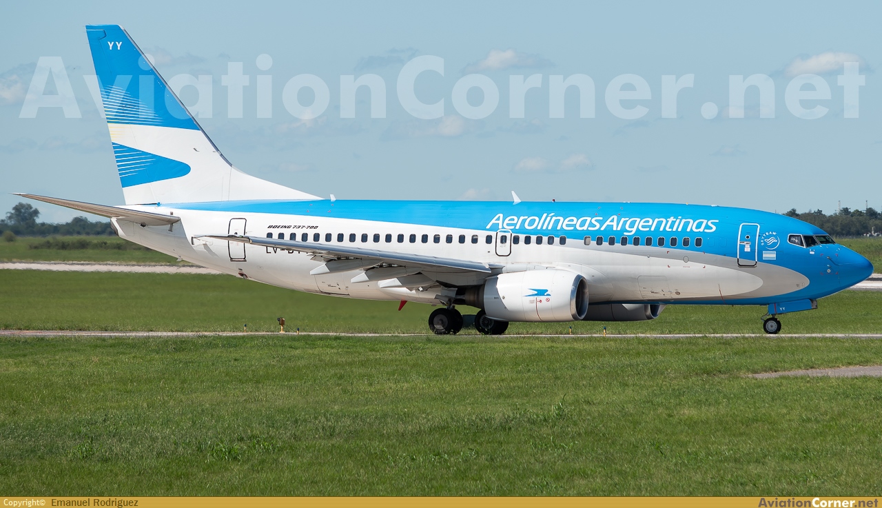 El B737-700 de Aerolíneas Argentinas matriculado LV-BYY por partir a Punta del Este