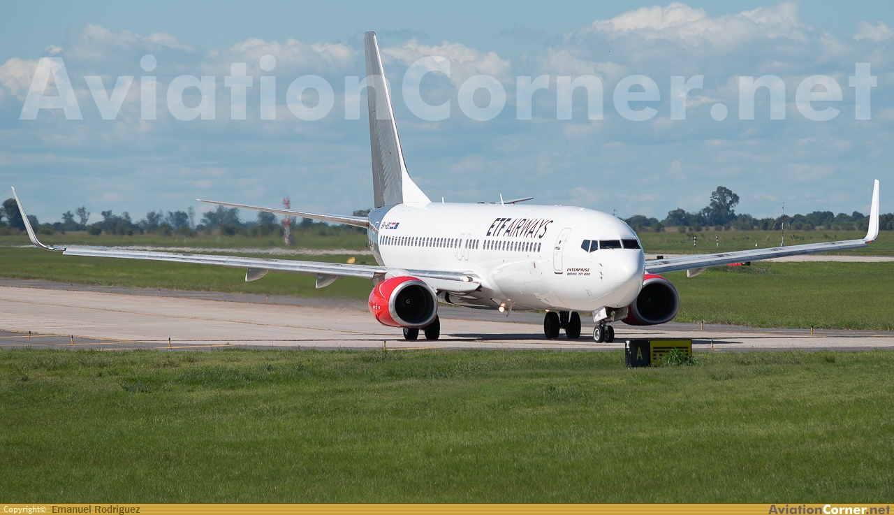 El 737-800 de ETF Airways alquilado por FlyBondi, matriculado 9A-ABC en rodaje a 01 para posterior despegar a Salta