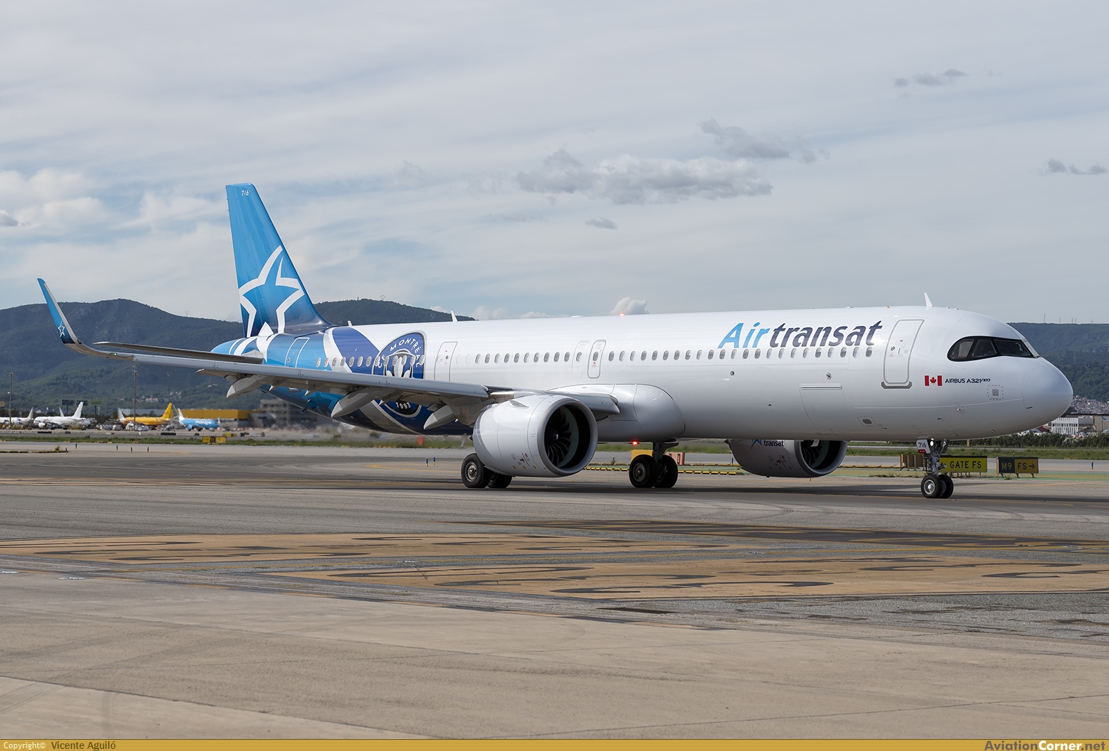 Rodando para despegar por la pista 24L de Barcelona (BCN) en vuelo TS261 con destino Montreal (YUL). MSN: 11802