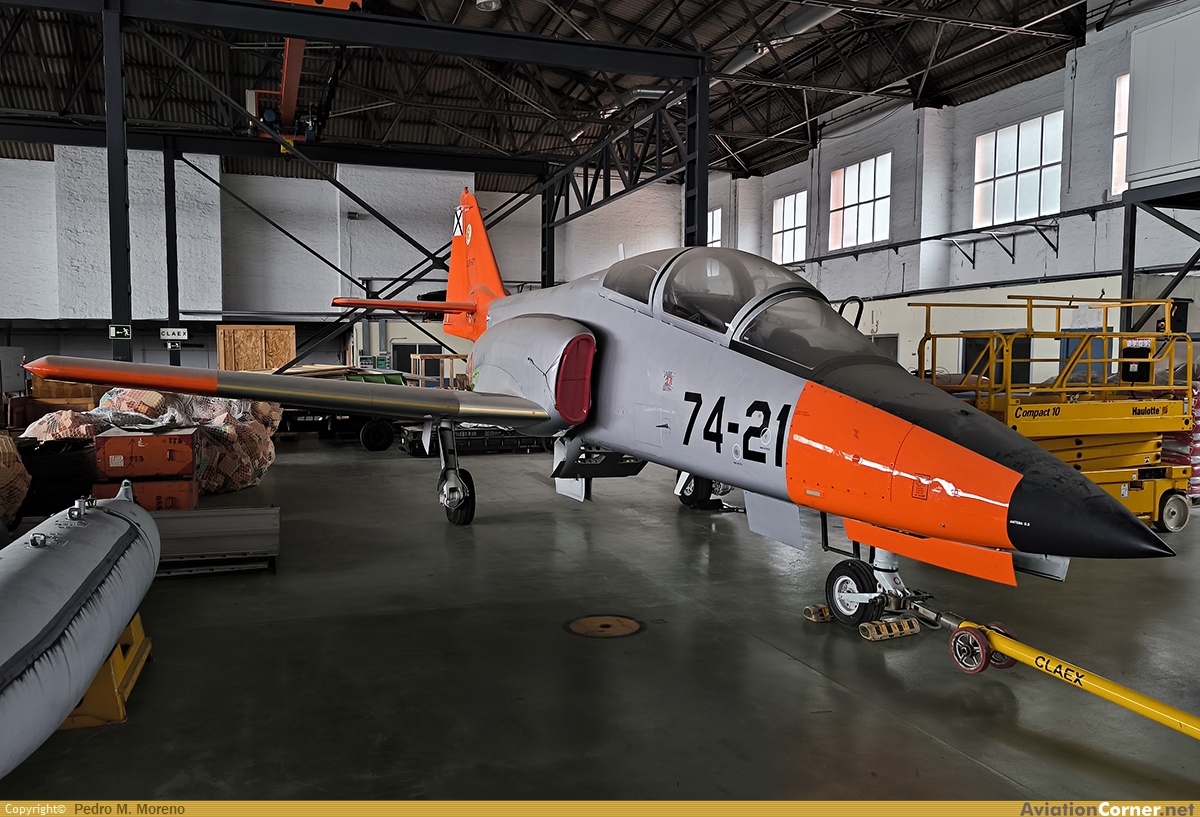 Al fondo del hangar y con una cápita de polvo se encontraba este C101 con la decoracion del AGA.
