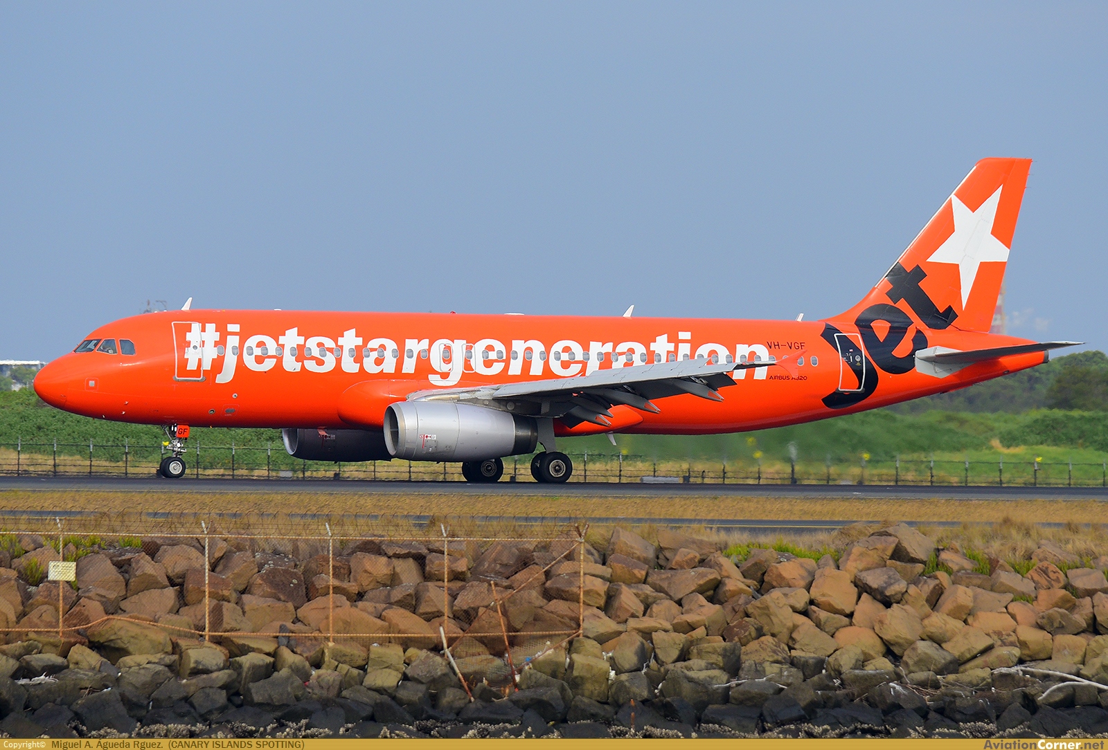 "Low Fares for Ever" livery rodando a plataforma después de tomar por la 16R. Desde el punto de spotting "the Beach".