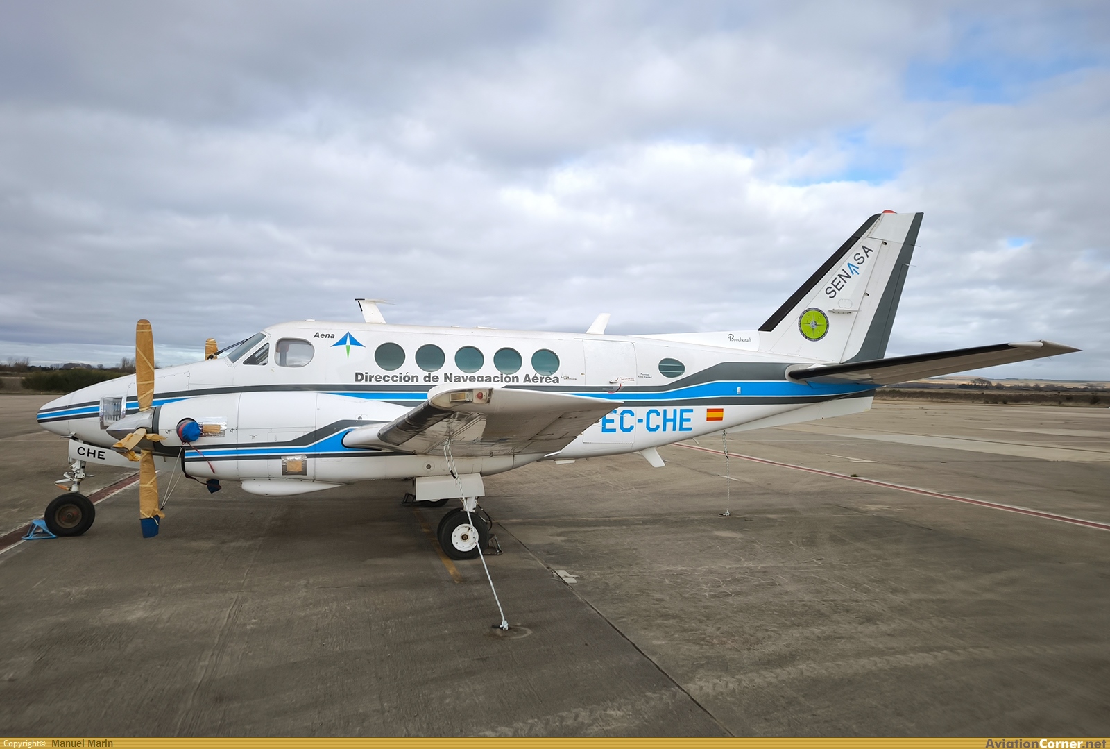 Preservada en la rampa civil de Matacán luciendo logo de Aena Aeropuertos y títulos de "Dirección de Navegación Aérea".