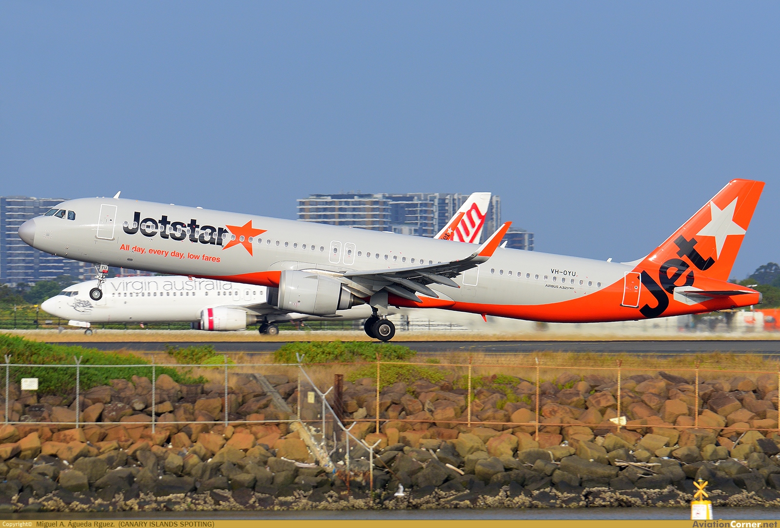 Rotando por la pista 34L mientras el B738 de Virgin rueda a plataforma.