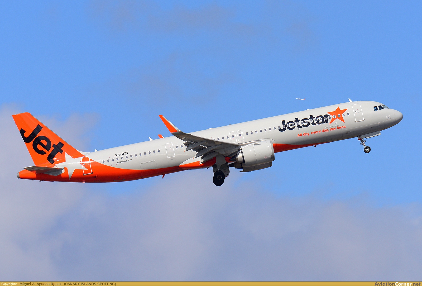 En el aire, despegando por la pista 16R. Detrás, un DHC de Qantas Link se dirige a la cabecera de la 16L.