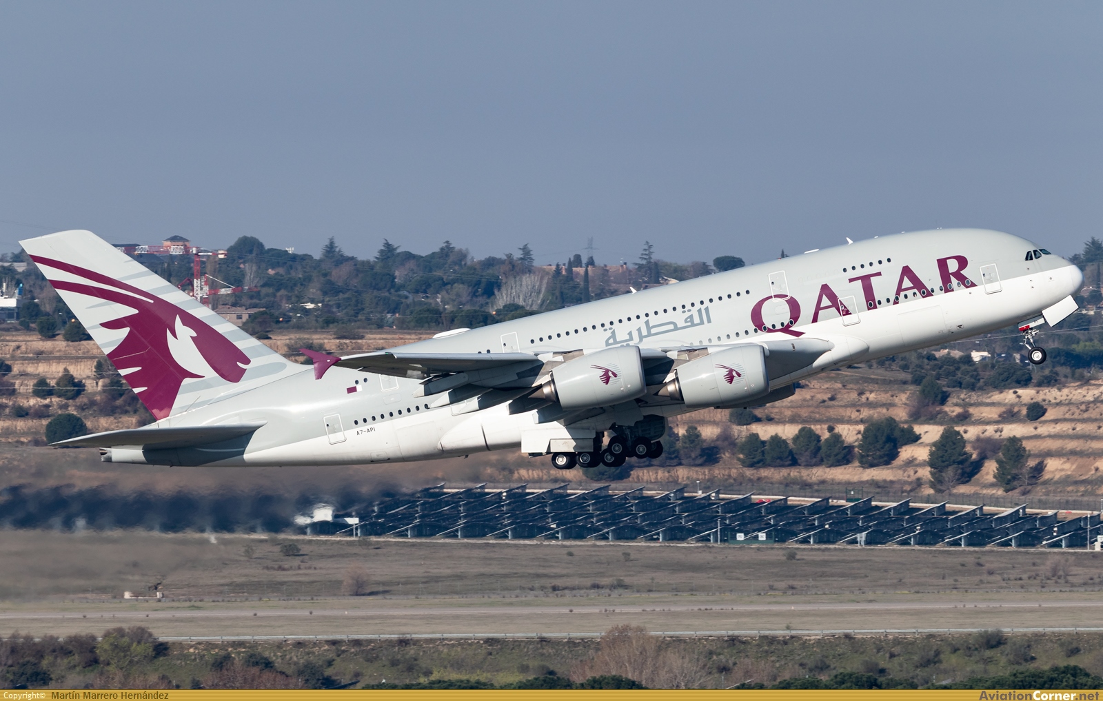 El imponente A380 de Qatar Airways despegando desde Madrid como QTR7465 hacia Bangkok con motivo de los vuelos de repatriación debidos al conflicto en Oriente Medio.