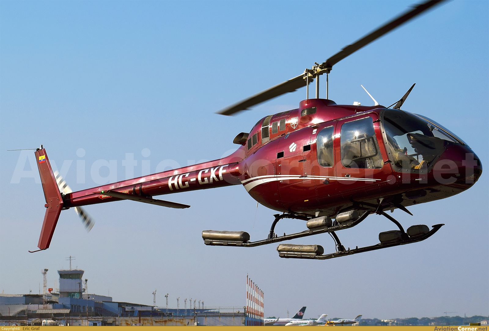 Este espectacular helicóptero B505 Jet Ranger X, matriculado como HC-CXF, aterrizando desde un lugar desconocido justo delante de mí, a pocos metros de distancia, en una tarde soleada. Por esta cercanía, la gorra que llevaba puesta ese día salió volando. La potencia de los motores, acompañado de su rugido, ¡fue increíble! Me encanta el livery de este helicóptero; ese tono concho de vino le queda muy bien.