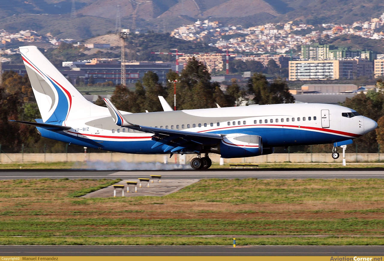 Avistado en el aeropuerto de Malaga el 22-03-2026 este Boeing 737-74U-BBJ de la compañia JetLite