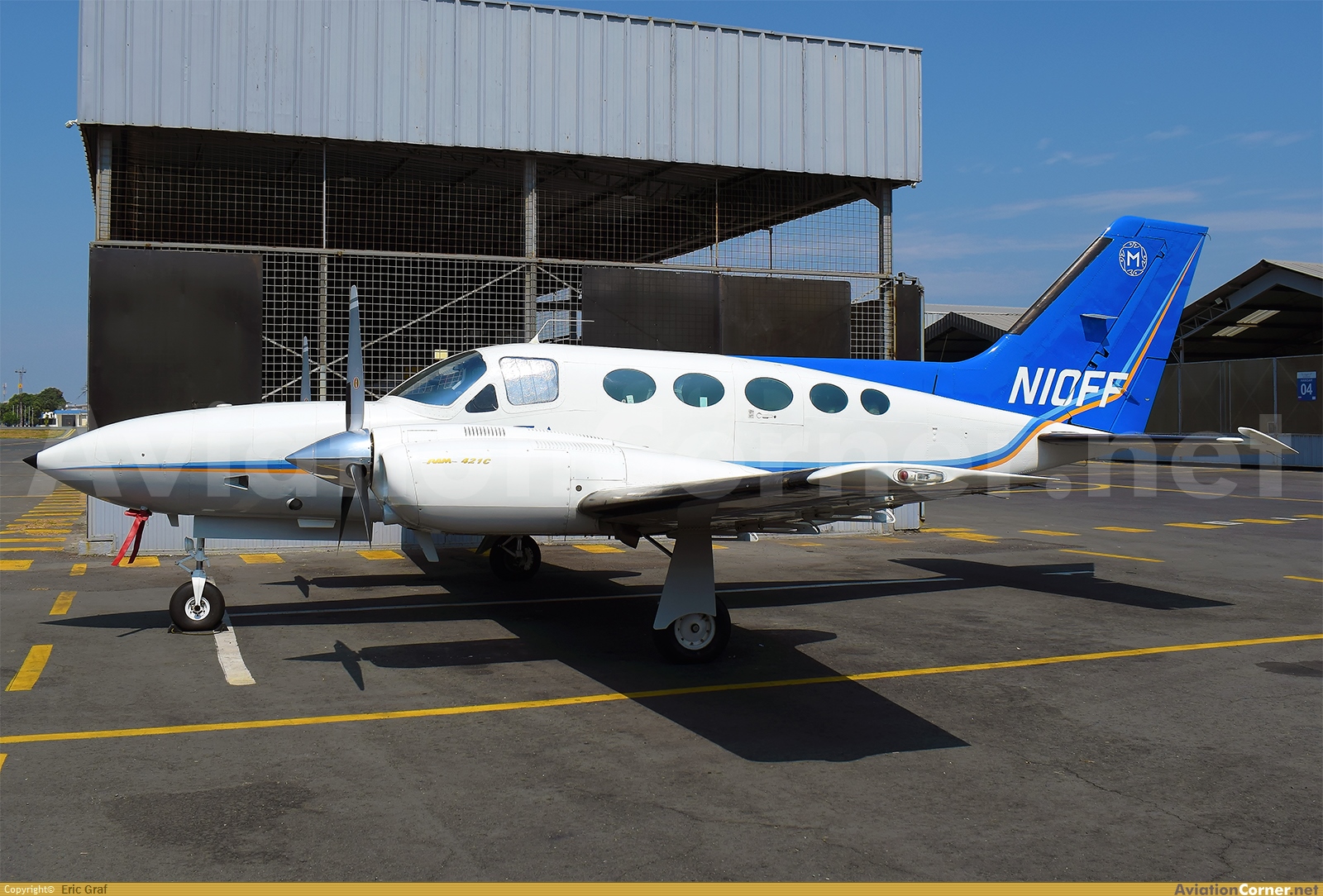 Nueva aeronave operando en Ecuador! Esta C421 fue construida en 1976 y si no me equivoco, está volando en el país desde 2024 haciendo vuelos nacionales y también a países vecinos como Colombia y Perú, siendo operada por Ecuamuza, una compañía de pesca. En esta foto la podemos ver descansando en la plataforma del Aeroclub del Ecuador en una tarde soleada ya que ese día no tenía vuelo programado.