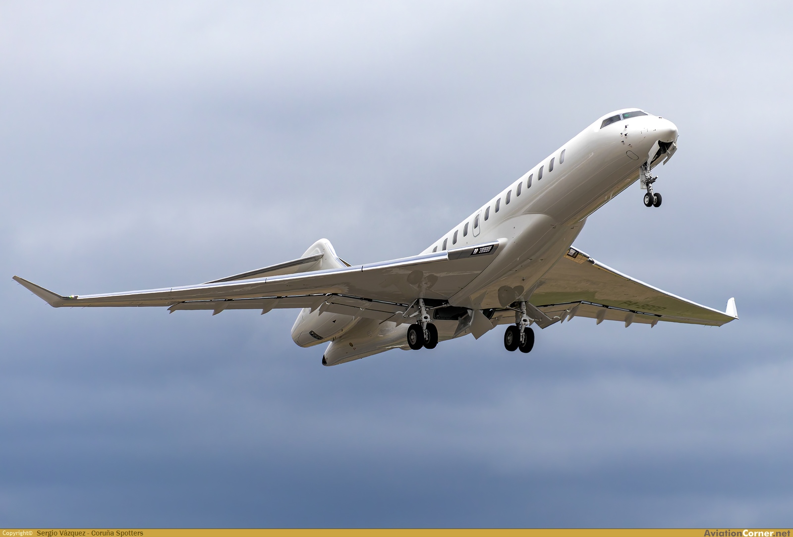 Bombardier Global 8000 de Comlux Aviation despegando desde el Aeropuerto de A Coruña (LCG), siendo el primer Global 8000 en operar en este aeropuerto.